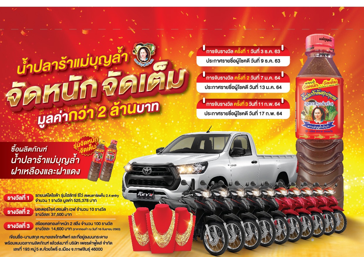 With experiences that has been passed down from generations to generations for more than 40 years, a secretly and meticulously formulated recipe gives the fermented fish sauce " Maeboonlam " brand a uniquely delicious taste, good smell, and satisfaction fromThai people's mouth until now.