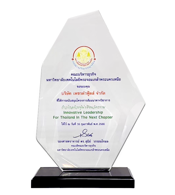 Later in 2014, Petch Dam Foods Company Limited was founded and the first prooduct was fermented fish sauce under the brand "Maeboonlam", a good quality product of Kalasin Province that produced sustainable income for the villagers in the surrounding communities. It was developed into sustainable product according to international standard which eventually became one of the national export products.